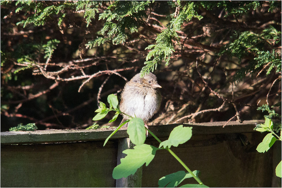 We’ve also had our first young fledgling visit the garden. I was taking photos one evening after work when I noticed movement on the back fence…