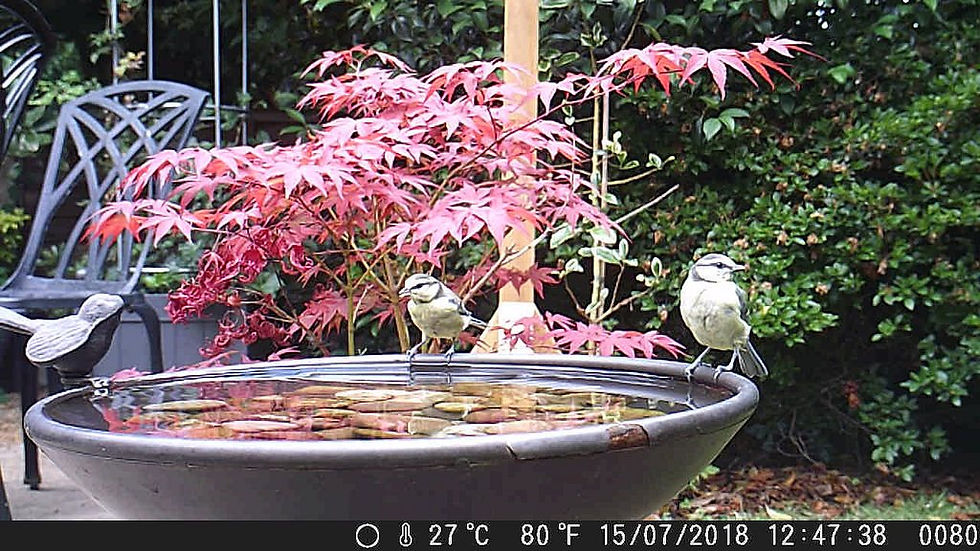 The Blackbird appears to have started to moult – either that or the pressure of bringing up youngsters has turned him grey!
